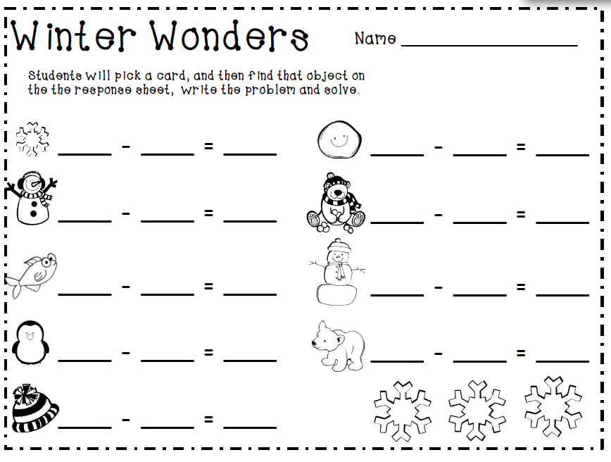 There are sets of 0-20 Ten Frame Cards in three different styles - Snowman, Penguin, & Polar Bear. The larger set can be used to put up in the classroom, to work with students individually or in small groups. The smaller sets can be used in a math station to match up and of course there is a response sheet for each set. There is a Making 10 Response Sheet as well as a Count the Room.